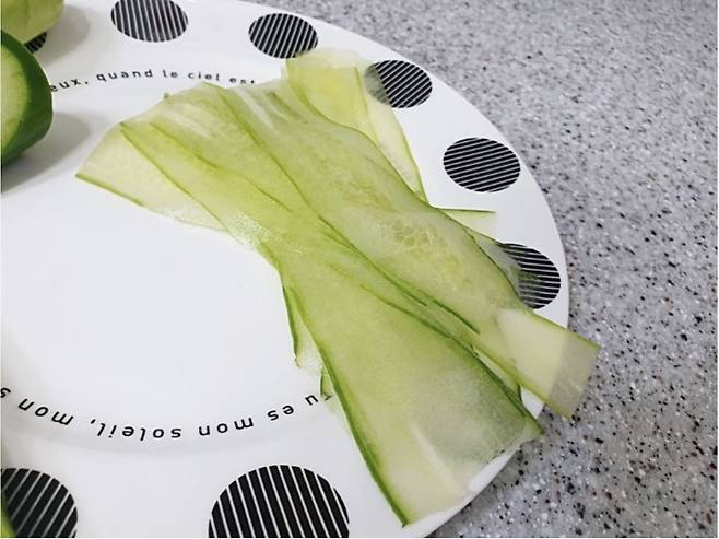 오이의 오돌토돌한 부분은 필러로 슥슥 긁어주세요