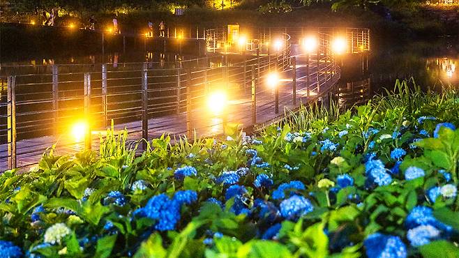 수국이 길게 늘어선 구간에서는 누구나 자연스럽게 사진이 잘 나오는 배경을 만날 수 있고, 인공적인 구조물보다 숲과 꽃이 어우러진 풍경 속에서 따뜻한 감성의 사진을 남길 수 있다.