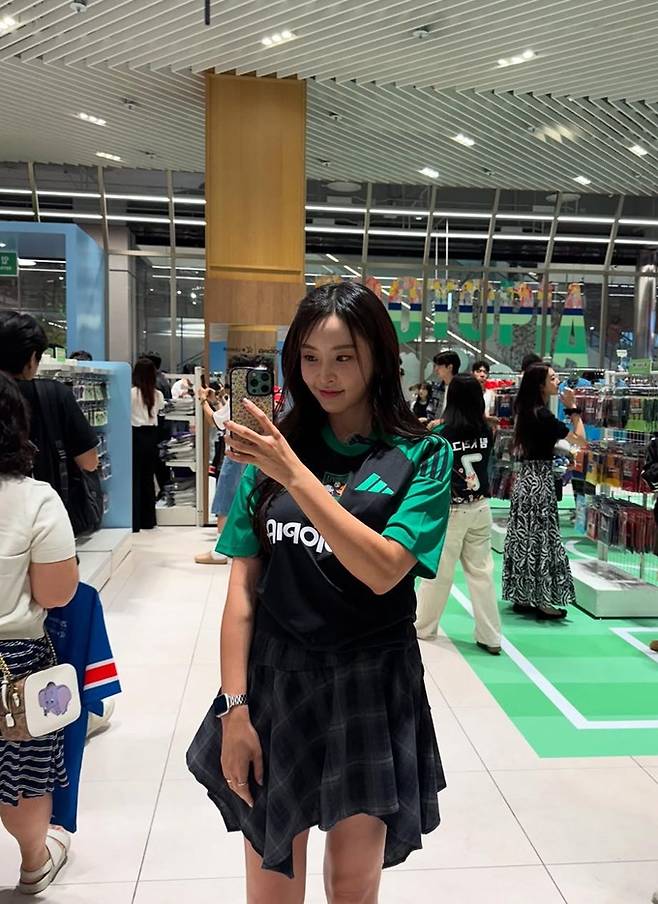 배우 정유미가 힙한 축구 팝업 나들이룩으로 축구 매니아 임을 증명했다.
