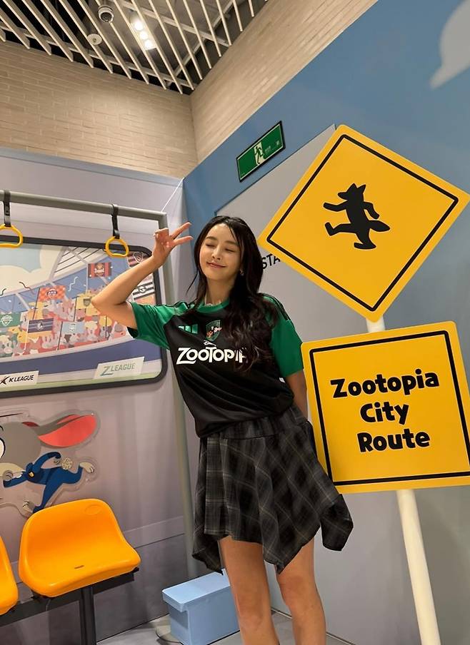 정유미는 25일 자신의 채널에 “K리그x주토피아=수만번의 V+조vin님. K리그, 디즈니코리아”라는 글과 함께 K리그1 주토피아 팝업스토어 행사 참여 사진을 게재했다.