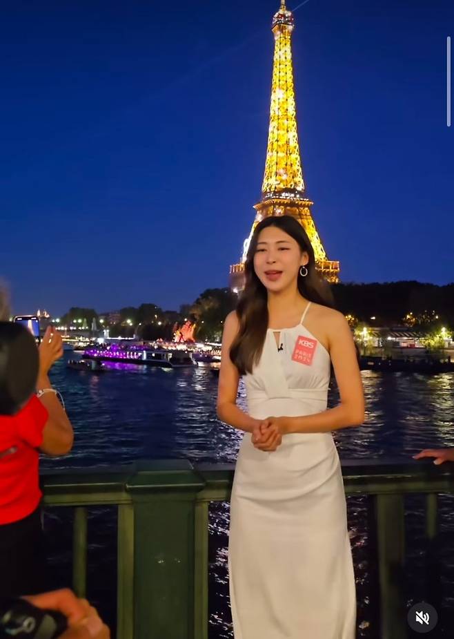 이날 홍주연은 파리의 밤을 배경으로