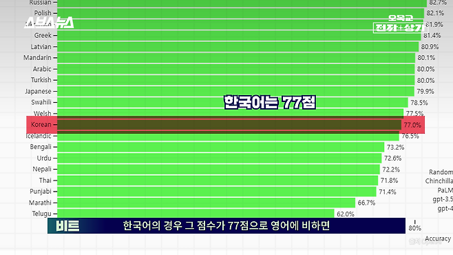 한국어 실력은 영어에 비해