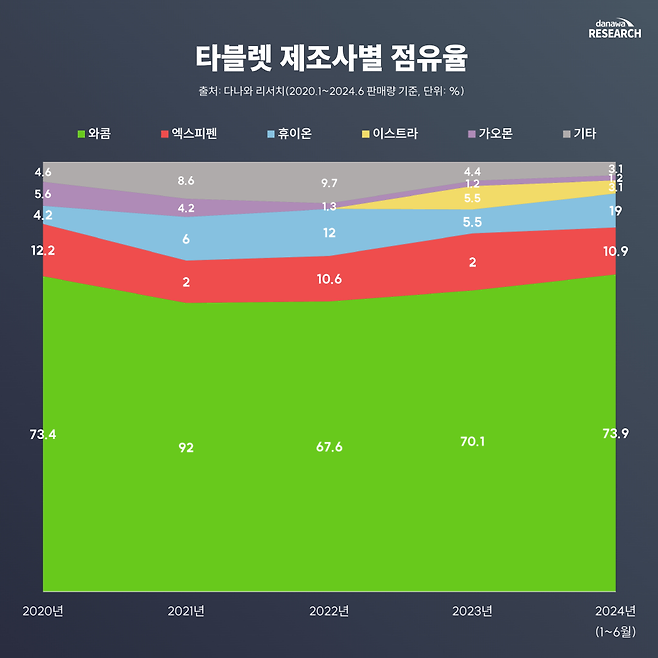 다나와 리서치에 따르면, 타블렛 시장의 부동의 1위(액정, 펜 타블렛 막론하고)는 와콤이다. 2010년, 와콤이 갖고 있던 타블렛의 스타일러스 펜과 관련한 특허가 만료되면서, 와콤이 독점기업 소리 듣던 시절은 오래전에 끝났지만 그럼에도 여전히 타블렛의 선택지는 와콤이냐, 아니냐로 나뉜다고 해도 전혀 과언이 아니다. 특히 와콤의 '신티크' 라인업은 2000년대 이후 20년 넘게 소비자들 사이에서 '액정 타블렛'을 지칭하는 대명사로도 쓰이고 있다.