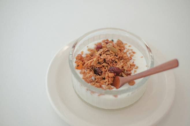 아침: 그릭요거트 + 견과류 + 아마씨