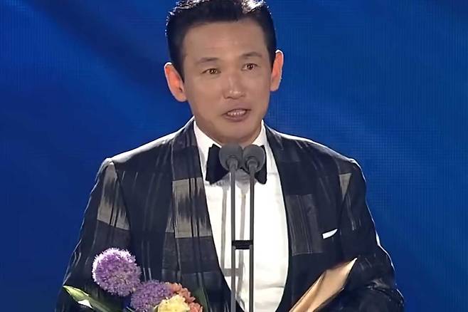 영화 부문 남자 최우수연기상을 받은 그는 "사랑하는 가족들, 그리고 샘컴퍼니 대표이자 저의 평생 동반자이자 친구인 아내 김미혜 씨에게 사랑한다고 전하고 싶다"라고 말하며 울컥한 모습을 보였습니다.