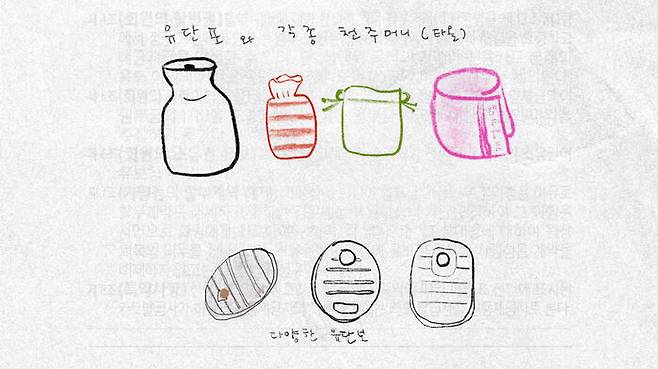 이 제품들은 각기 용도가 다르기 때문에 우선순위를 가려 추천하기는 어렵습니다. 각자의 상황에 맞게 필요한 것부터 마련하면 좋겠죠. 외풍이 심한 집에 산다면 잠잘 때 칠 텐트가 가장 급하고, 사무실 책상 밑이 유독 춥게 느껴진다면 접이식 히팅 패드나 데스크 히터, 일할 때 손이 시린 사람은 책상 위에 올려놓을 미니 온풍기를 알아볼 텐데요. 저는 먼저 유단포를 써보시라 권하고 싶어요. (일본어 ゆたんぽ에서 온 말로 '유담포'라고도 합니다. 참고로 국어사전에는 같은 의미를 가진 '탕파湯婆'라는 말이 올라 있네요. 아무도 그렇게 부르진 않지만…)