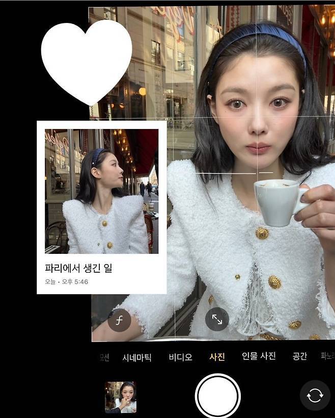 첫 번째 화이트 룩에서는 트위드 재킷과 레이스 원피스를 매치해 우아하고 로맨틱한 분위기를 연출했습니다.