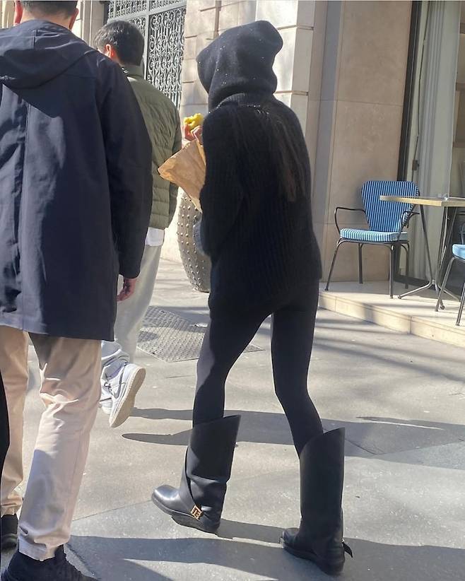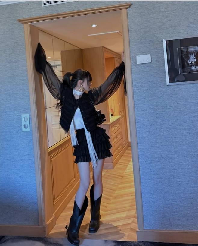 이어진 하이 포니테일과 골드 이어링은 도회적인 감성을 배가시켰으며, 볼드한 블랙 부츠로 전체 스타일을 단단하게 마무리해 강렬한 존재감을 드러냈습니다.