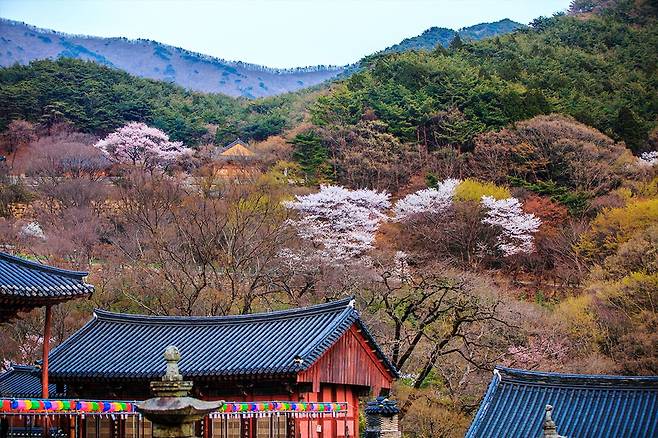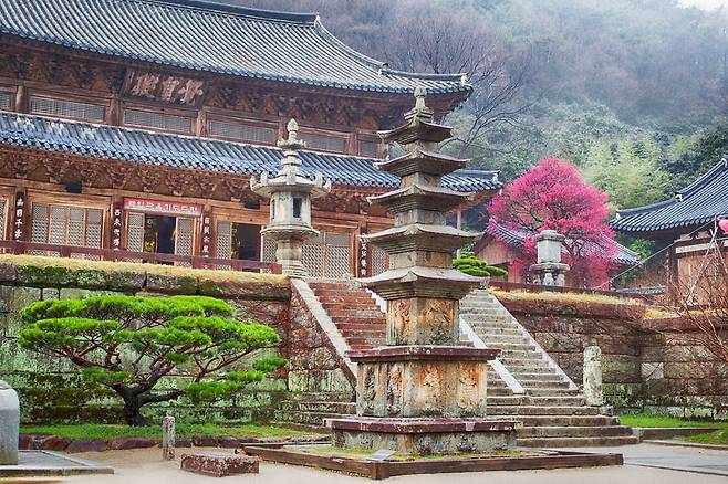 화엄사 경내에는 국보와 보물로 지정된 문화재들이 많아 홍매화와 함께 전통 건축의 아름다움을 감상할 수 있습니다.