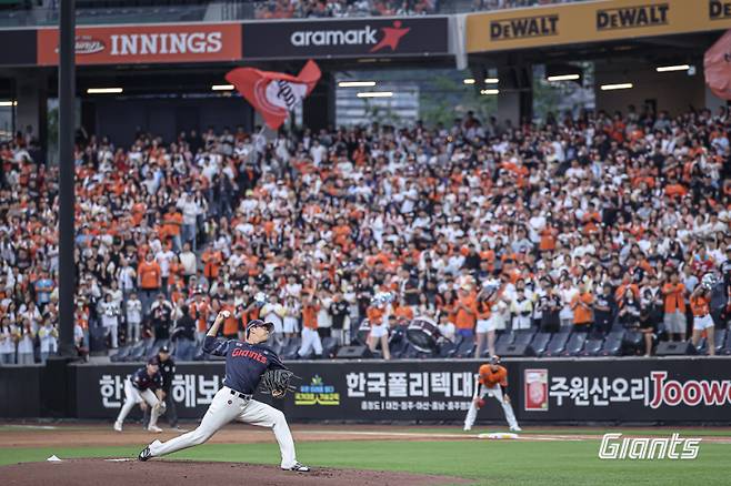 김태형 롯데 감독은 11일 KT 위즈전, 17일 삼성 라이온즈전에서 모두 100구 이상 투구한 박세웅에게 하루 휴식을 부여했다. 원래 22일 LG 트윈스전 등판할 차례였지만, 하루 밀려 한화전에 나선 것. 2023시즌까지는 종종 일부로 한화전을 피해 등판 경기를 잡는 감독도 있었다. 하지만 김태형 감독은 그런 이유로 등판 순번을 바꾸지 않을 것이라고 공언했다.어차피 이겨내야 할 징크스. 박세웅이 더 다부진 자세로 마운드에 오르는 데 김태형 감독의 '노빠꾸' 방침도 영향을 미치지 않았을까. 그 어느 해보다 좋은 페이스를 보여주고 있는 박세웅, 그의 질주가 이어질지 주목된다.