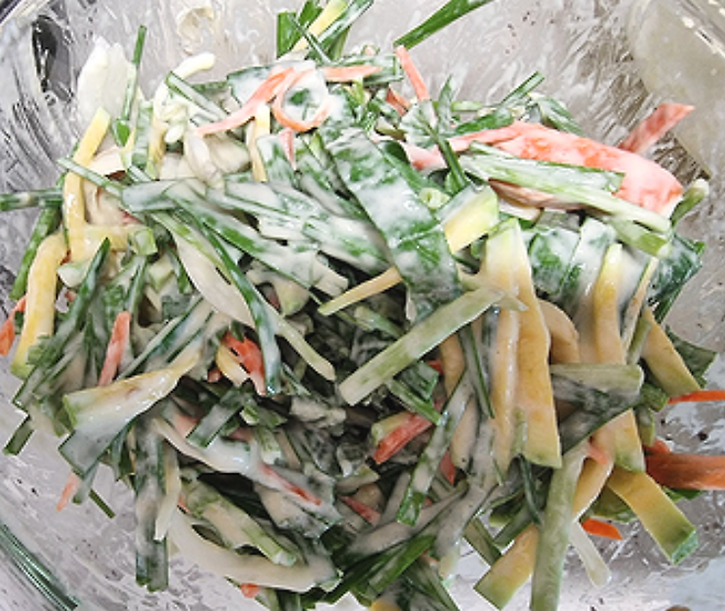 3. 야채와 반죽 섞기