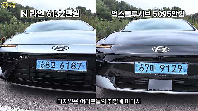 세로 패턴의 하단 그릴이 보인다면 이 차량은 N라인이라고 판단할 수 있습니다. 반면, 하단에 스키드 플레이트가 적용되어 있다면 이 차량이 바로 기본 모델이죠. 디자인은 개인의 취향에 따라 선호도가 달라지기 때문에, 여러분의 취향에 맞는 차량을 선택하시면 좋을 것 같습니다. 측면부에는 어떤 차이가 있는지 좀 더 자세히 볼게요.