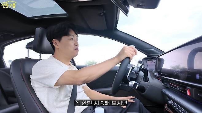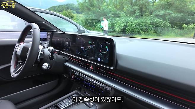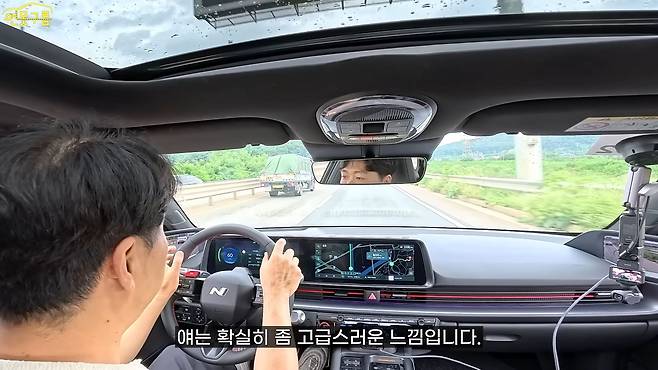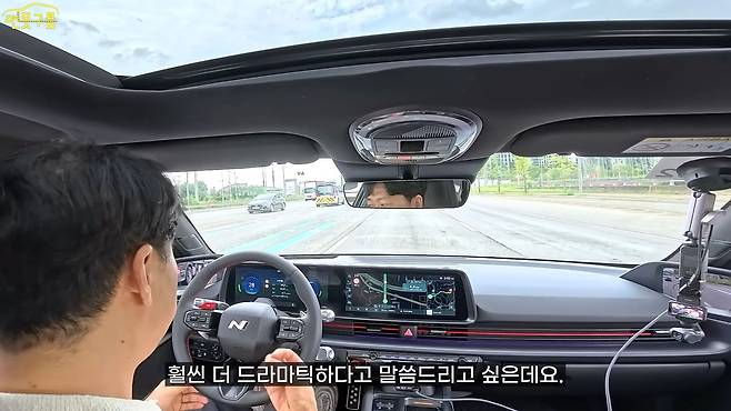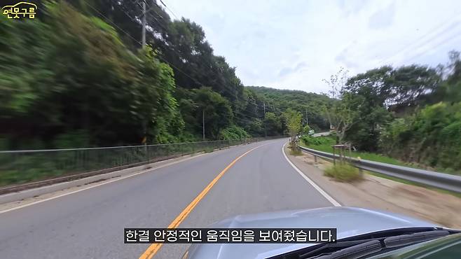 아니, 이렇게 잘할 수 있었는데 왜 이제야 이렇게 만들었을까 하는 아쉬움 때문이죠. 전기차만의 가벼운 느낌들이 싹 사라진 것 같은 그런 느낌입니다. 지금 도로 자체가 좀 우둘투둘한 구간을 달리고 있는데요, 포트홀도 간간이 보이는 도로입니다. 여기에서 또 달라진 부분이 확실히 느껴집니다.