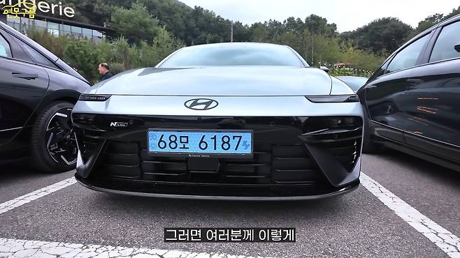 블랙 색상 차량에서는 잘 보이지 않아 좀 더 밝은 톤의 차량으로 이동해 살펴보았습니다. 측면부에서는 사이드 립 부분이 달라진 것을 확인할 수 있었죠. 여기에 블랙 색상 가니시가 더해지면서 차량 자체가 훨씬 날씬해 보이는 시각적인 효과를 얻고 있습니다. 또한 무광 색상의 N라인 모델도 있었는데, 확실히 느낌이 다르다고 말씀드리고 싶어요.