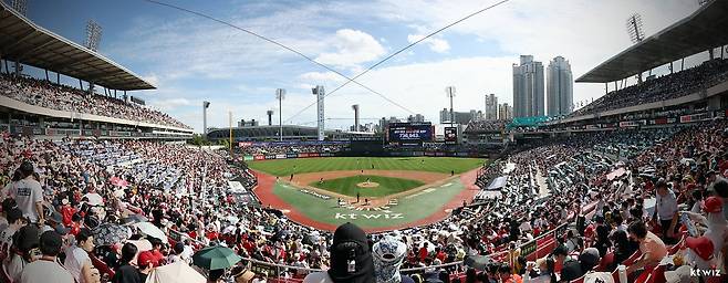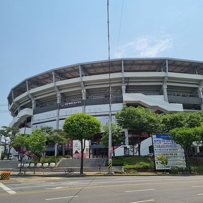 서울의 숭례문, 흥인지문과 함께 조선시대의 성문을 대표한 수원의 장안문. 장안문은 조선 후기 정조 대왕의 지시로 창건된 수원 화성의 북문(北門)이자 수도 한양에서 수원으로 들어오려면 가장 먼저 통과해야 하는 정문이다. 어느덧 수원의 랜드마크가 된 이 장안문에서 출발해 큰길을 따라 쭉 걷다 보면, 약 2km 거리에 있는 수원종합운동장에 도착할 수 있다. 이곳은 주 경기장과 야구장, 체육관이 한데 모여있다. 수원FC가 안방으로 사용하고 있는 축구장, V-리그 한국전력 빅스톰과 현대건설 힐스테이트 배구단이 같이 사용하고 있는 배구장 옆에 수원KT위즈파크(이하 위즈 파크)가 보인다. 종합운동장에 함께하지는 않지만, 수원 KT 소닉붐의 소닉붐 아레나를 합해 4대 구기 종목 스타디움을 모두 갖춘 수원특례시다.