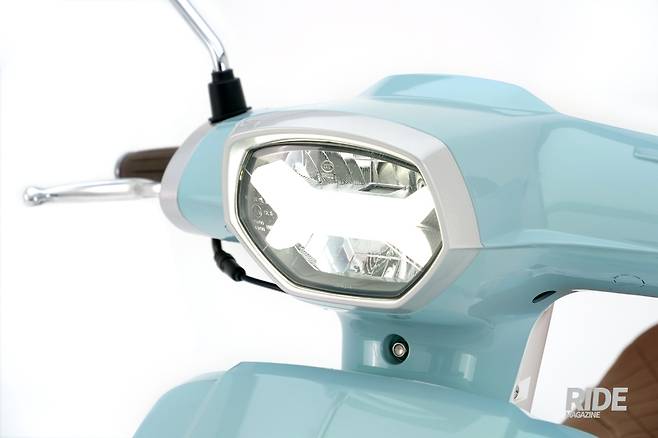 대부분 스쿠터들이 전면 카울에는 데칼을 입히거나 브랜드 로고 정도를 부착하는 선에서 마무리하는데, 니키는 마치 자동차의 그릴을 연상시키는 파격적인 디자인을 채용했다. 헤드라이트처럼 보이는 좌우의 램프는 바로 방향지시등. 브랜드 엠블럼은 펜더 위에 간략화되어 자리했는데, 꽤 오래된 느낌이 물씬 풍기는 엠블럼을 그대로 담지 않아 다행이라는 생각이다.