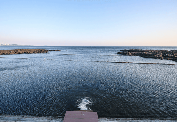 솟아오르는 용천수를 이용해 바닷가에 만든 풀장인 논짓물인데요. 한쪽은 용천수의 담수 풀장으로 이루어져 있으며, 다른 한쪽은 바닷물 풀장으로 이루어져 있어 특별하 시간을 보내기 좋은 곳입니다.