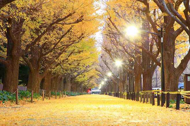 교토 못지 않게 일본의 수도인 도쿄도 단풍 명소가 많은데, 그 중 11월 중순에서 12월 초 사이에 메이지 진구 가이엔을 방문하면 수많은 은행나무가 물든 잎으로 아름다운 색상을 자랑한다.
