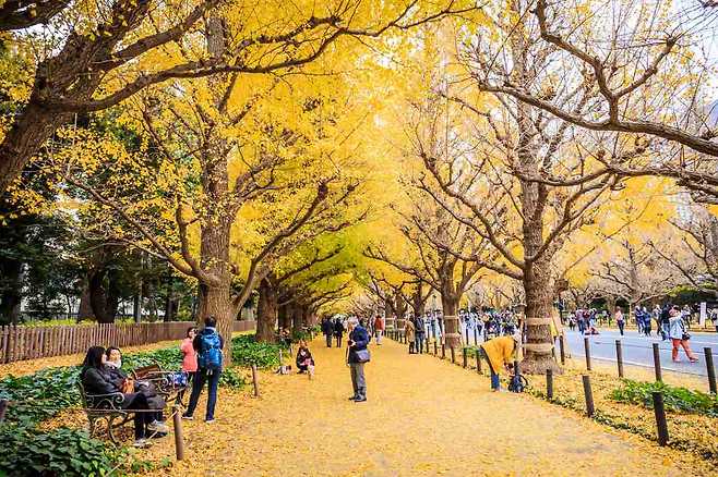 교토 못지 않게 일본의 수도인 도쿄도 단풍 명소가 많은데, 그 중 11월 중순에서 12월 초 사이에 메이지 진구 가이엔을 방문하면 수많은 은행나무가 물든 잎으로 아름다운 색상을 자랑한다.