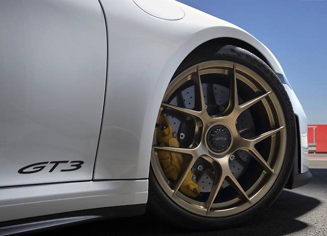 외적인 디자인뿐만 아니라 포르쉐는 911 GT3 모델에 특별히 개발된 물방울 모양의 트레일링 암(앞쪽 더블 위시본 액슬)을 장착해 고속에서의 다운포스와 브레이크 냉각 성능을 향상했습니다. 또한, 전후방 액슬 사이의 균형이 유지되도록 피칭(차체 앞뒤 흔들림) 현상을 줄여 트랙에서의 주행에 최적화된 모델이라고 평가받고 있습니다.