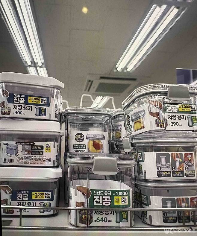 크기는 400ml, 680ml, 1480ml로 다양해, 마늘부터 긴 대파까지 모두 보관 가능하다. 가격은 크기에 따라 2000~3000원이며, 압축기는 별도 구매로 1000원이다. 단, 전자레인지나 식기세척기 사용은 불가능하다. 사용자 후기에는 “견과류 보관에 최고다”, “타사 제품보다 가성비가 좋고, 냄새도 안 배서 만족스럽다”라는 반응이 많다.