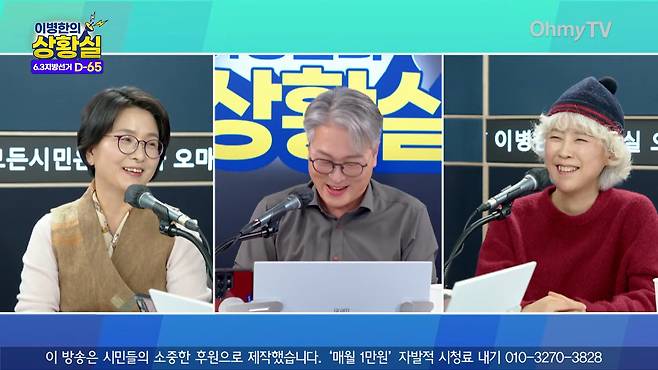 | ▲ 임미애 더불어민주당 국회의원(경북도당 위원장, 사진 왼쪽)과 홍주현 영화 ‘빨간 나라를 보았니’ 감독(오른쪽)이 30일 오마이TV ‘이병한의 상황실’과 인터뷰 하면서 웃고 있다. |