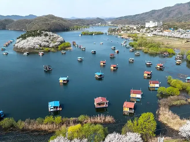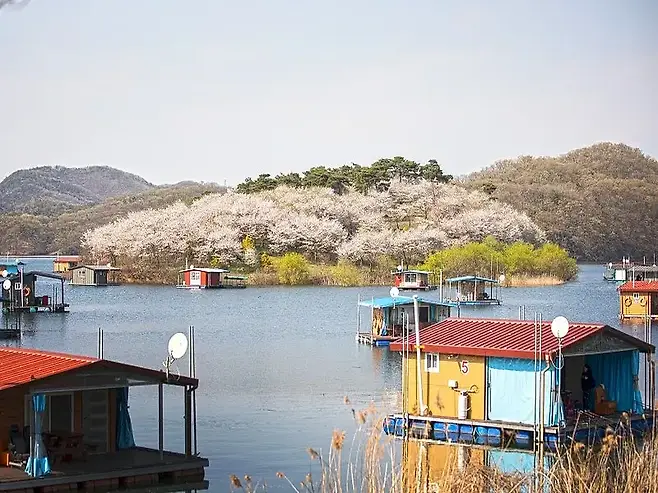 충북 진천에 자리한 ‘초평붕어마을’은 매년 봄이면 작은 섬 전체가 벚꽃으로 물드는 장관을 선사한다. 꽃잎으로 뒤덮인 ‘꽃섬’을 걷다 보면, 마치 해외 어딘가의 한적한 시골 마을에 와 있는 듯한 이국적인 정취가 가득하다.