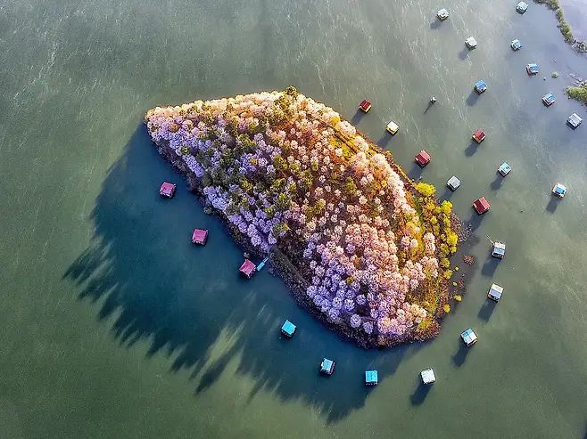 특히 섬 전체가 자유롭게 개방되어 있어, 어느 길로 걸어도 인생 사진을 건질 수 있을 만큼 아름다운 뷰가 끊임없이 이어진다. 물가에 떨어진 꽃잎들이 저수지 위를 뒤덮는 순간은 꼭 직접 눈에 담아두고 싶을 정도로 소중하다.