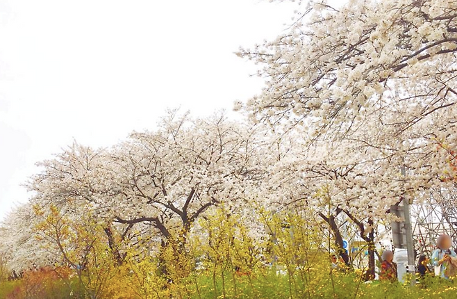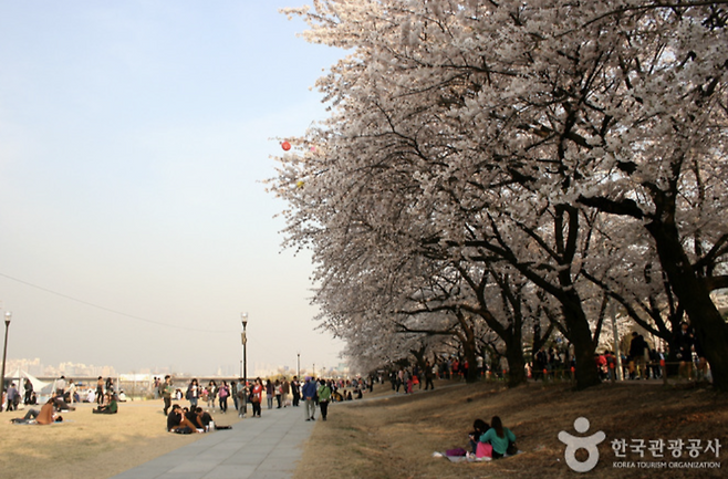 특히 50대 이상 방문객들에게 이곳이 높은 만족도를 기록하는 이유는 산책로의 구성에 있습니다. 한강을 옆에 끼고 평탄하게 이어지는 길은 무릎이나 체력에 부담을 주지 않으면서도 수려한 강바람과 꽃향기를 동시에 즐길 수 있는 최적의 환경을 제공합니다. 흙길이나 가파른 언덕 대신 잘 정비된 아스팔트와 보행로를 따라 걷다 보면, 좌측으로는 1,976그루의 벚나무가, 우측으로는 드넓게 펼쳐진 한강 공원의 전경이 펼쳐져 도심 속 진정한 해방감을 선사합니다.