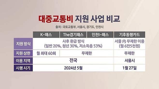 올 상반기 정부와 수도권 3개 지방자치단체가 진행하는 교통 지원사업이 시행됩니다.