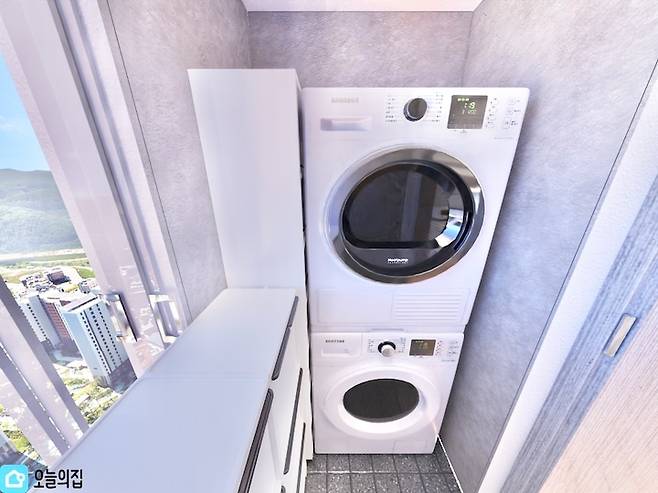 워낙 좁은 세탁실이라 사진으로는 담기지 않기 때문에 건설사에서 제공해 준 3D 미리 보기로만 볼 수 있는 세탁실 전경입니다.