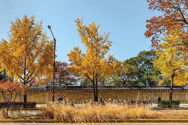 명륜당의 앞마당은 단풍이 환상적으로 변하는 장소로 유명한데요. 명륜당의 은행나무는 서울의 다른 지역보다 단풍이 들기 늦고, 그 지속 기간도 길어 고요하게 즐기기 좋다고 할 수 있어요. 젊음의 분위기와 함께 아름다운 사진 한 장 찍어가세요.