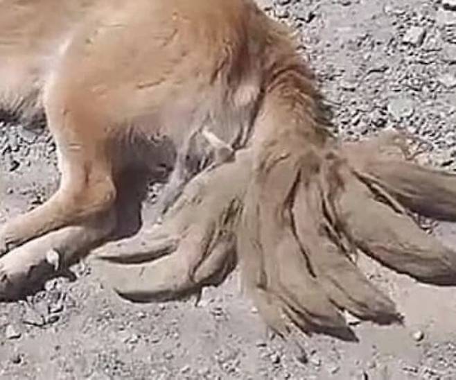 가까이 다가가 본 순간 그가 본 것은 충격이자 슬픔이었습니다. 꼬리 8개처럼 보였던 것은 사실 진짜 꼬리가 아니었습니다.