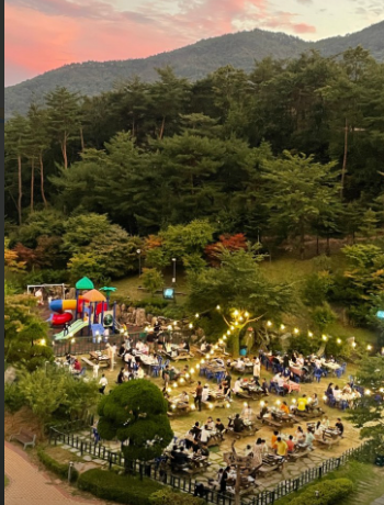 야외 바비큐장에서 숲 향기와 함께하는 저녁 식사, 아침에는 한식·양식이 어우러진 조식 뷔페로 하루를 시작할 수 있어요. 노래방, 오락실, 당구장 등 실내 시설도 잘 갖춰져 있어 날씨에 구애 없이 즐기기 좋고, 일부 객실은 간단한 취사도 가능해 가족 단위나 장기 숙박에 적합합니다.
