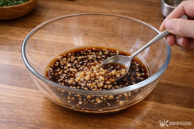맛을 결정하는 양념장은 간장 2큰술, 굴 소스 1큰술, 맛술(미림) 2큰술, 다진 마늘 1큰술을 섞어 만든다. 숙주와 새우에 양념을 붓고 센불에서 약 2분 30초간 빠르게 볶아낸다.