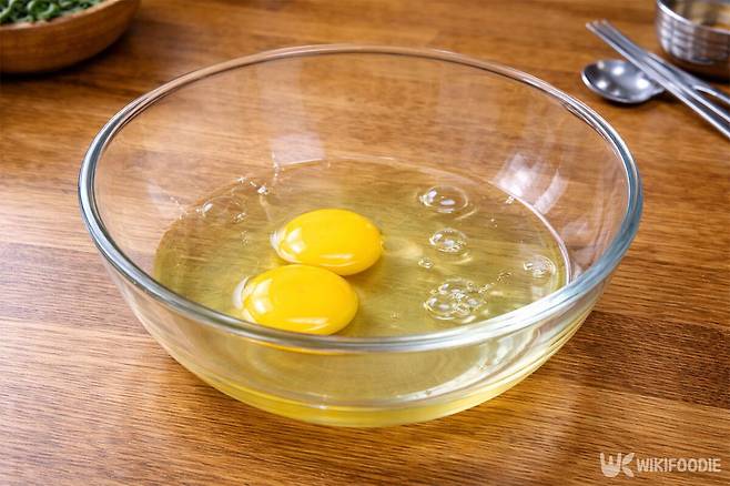 1. 계란 2개에 소금 2꼬집을 넣고 충분히 푼다.