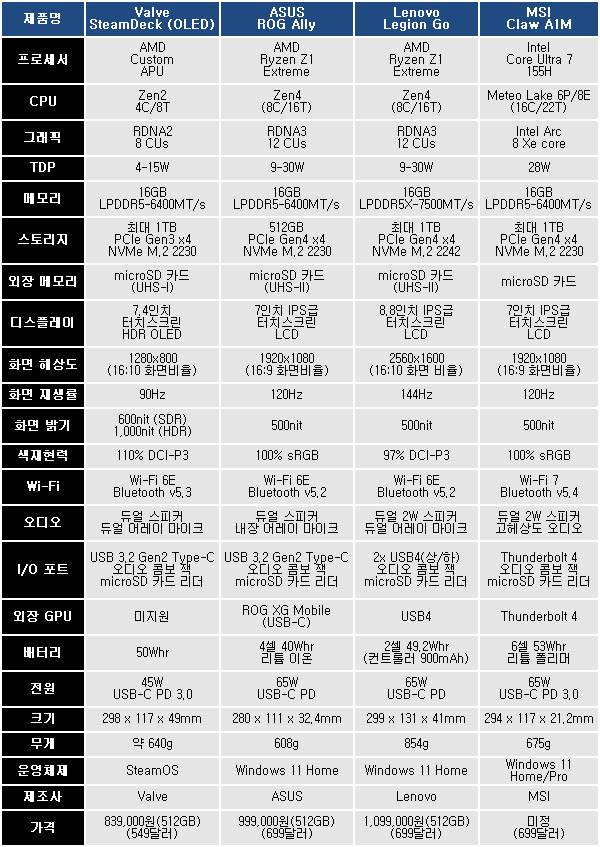 한편, ASUS ROG Ally와 Lenovo Legion Go 모두 해외에서 699달러에 출시되었으나 국내 시장에서는 ROG Ally가 99만 9천원, Legion Go는 109만 9천원에 출시됐기 때문에 MSI Claw A1M도 국내 출시될 경우 공식 판매 가격은 이와 비슷한 수준이 될 것으로 추측된다.