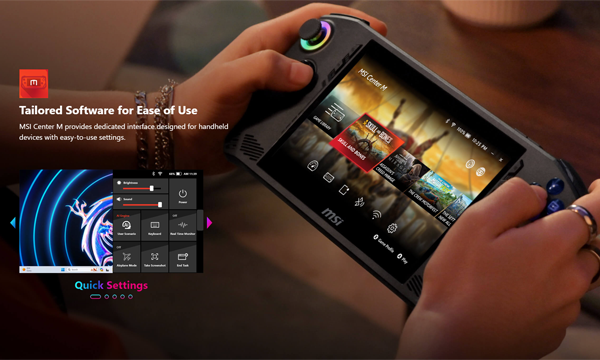 이번에 MSI가 발표한 Claw A1M은 그 동안 AMD 프로세서를 기반으로 출시된 밸브 스팀 덱, 에이수스 ROG 엘라이(ROG Ally), 레노버 리전 고(Legion Go)와 달리 인텔의 새로운 메테오 레이크 아키텍처와 인텔 아크 그래픽을 기반으로 하는 최신 인텔 코어 울트라 7 프로세서를 사용한 것이 특징이다.