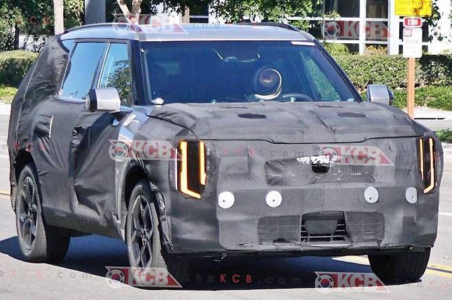 먼저 눈길을 끄는 부분은 독특한 형태의 헤드램프다. 미국에서 판매되는 만큼 호박색 주간주행등(DRL)이 탑재됐는데, 그간 기아 차량에 적용됐던 스타맵 시그니처 램프와는 사뭇 다른 구성을 확인할 수 있다. 세로 형태의 두 줄 램프가 들어갔고 그 사이에 하향등, 상향등이 세로로 배치된 것으로 파악된다.