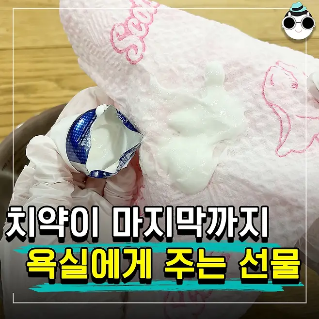 하지만 이번엔 지난번과 다르게 청소티슈를 만들어 볼 거예요. 마지막까지 화장실에서 알뜰살뜰하게 사용되다가 가는 치약이네요..♡ 치약으로 청소티슈를 만든 후 화장실 이곳저곳을 청소해 볼 거예요.