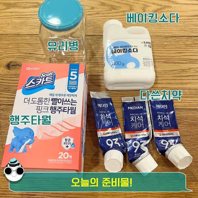 준비물 : 자투리 치약, 행주타월, 베이킹소다, 유리병
