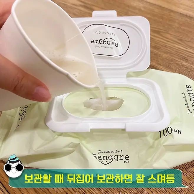 물티슈를 보관할 땐 뒤집어서 보관해 준다면 위에 있는 물티슈까지 더 잘 스며들 거예요!