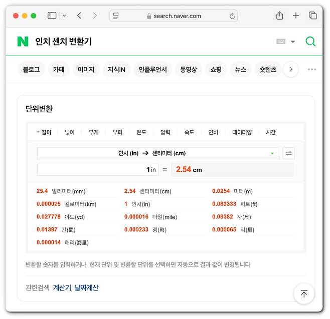 공구에서 아직도 인치를 많이 씁니다. 그래서 저도 수시로 변환기를 키곤 하는데요. 저도 초보 시절엔 많이 애를 먹었어요. 1인치는 2.54cm인데, 과감하게 뒤에 소수점은 날려서 2.5cm라고 생각하시면 됩니다. 그렇다면 4인치=10cm, 6인치+15cm, 8인치=20cm 이렇게 대략적으로 이렇게 외우면 됩니다(단 인치 수가 올라가면 2.5배수가 안 맞을 겁니다. 소수점이 쌓이거든요). 일상에서는 8인치 공구도 충분히 큽니다.