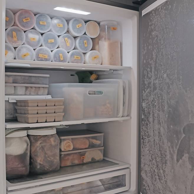냉동실의 경우 냉동된 음식물들이 맞닿은 서로에게 냉기를 전해주기 때문인데요. 다닥다닥 붙여서 냉동실 가득 채워두면 냉기 보존에 훨씬 도움이 된답니다.