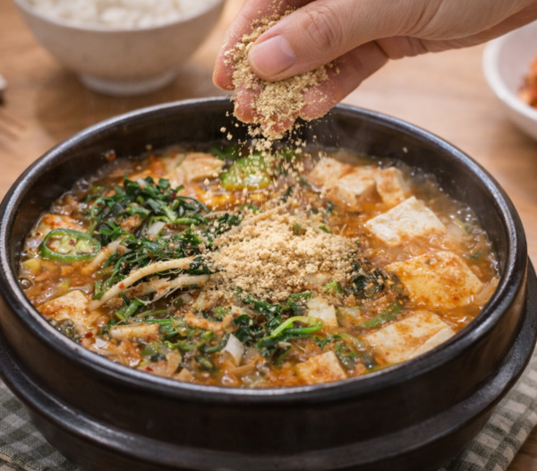 된장찌개는 그 자체로도 충분히 깊은 맛을 내는 음식이다. 하지만 제철 냉이와 생 콩가루를 더하면 영양 밀도와 풍미가 완전히 달라진다.