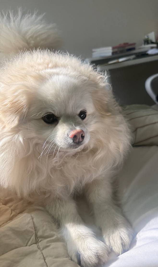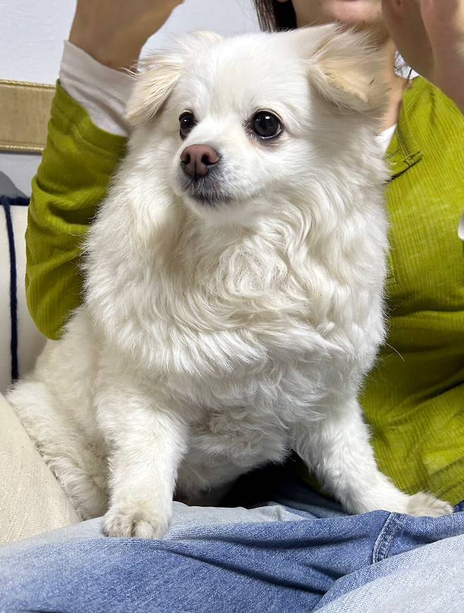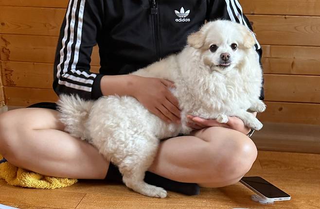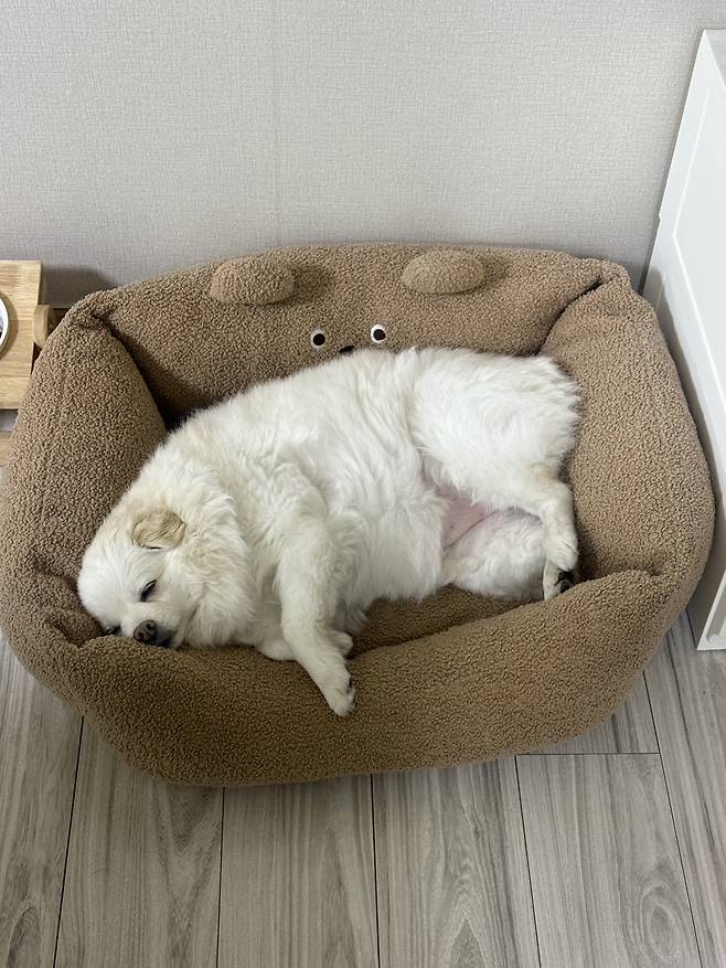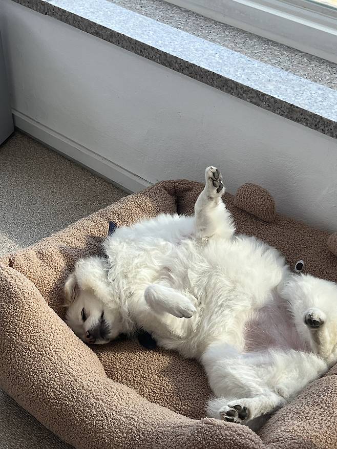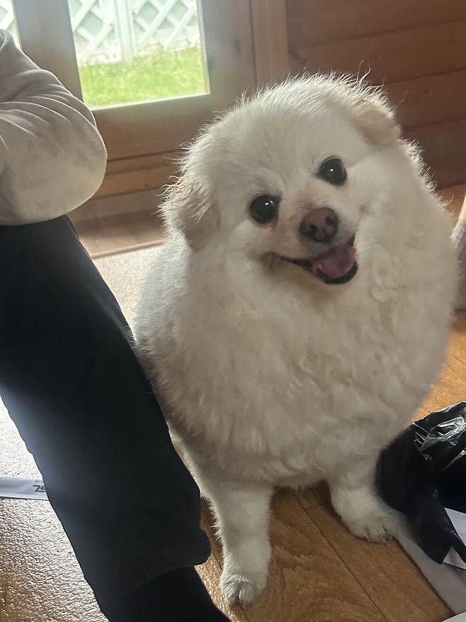 미용안하면 계속 꼬부랑거리면 부피 커짐 진짜 양처럼....막 포메같이 흘러내리는 풍성이 아니라 진짜...양처럼 부피감이 미쳤어....빗질해도 1분정도 가는득...꼬리도 꼬부랑함
