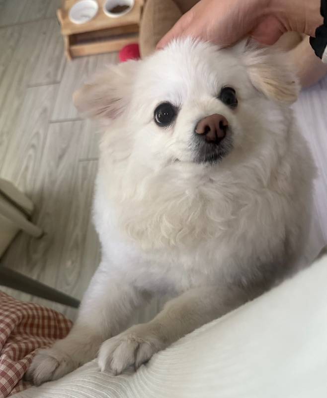++미쳤다 여시들이 이렇게 내새끼 귀여워해주니까 심장 두근거림;;예뻐해줘서 너무 고맙고 사진 더달라고 해줘서 넘 고마워,,,아 참고로 지인 이사가는 집에서 못데리고 간다고 파양한 파양견 믹스입니다,,부모랑 그런 정보 1도 몰라,,
