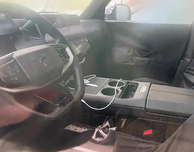 스티어링 휠에 선명한 브롱코 로고가 새겨진 실내는 현행 브롱코 모델들보다 한층 고급스러운 느낌을 준다. 특히 대형화된 센터 스크린과 위장막 아래로 확인되는 도어 암레스트의 밝은 색상 트림은 프리미엄 감성을 강조하는 요소로 보인다.