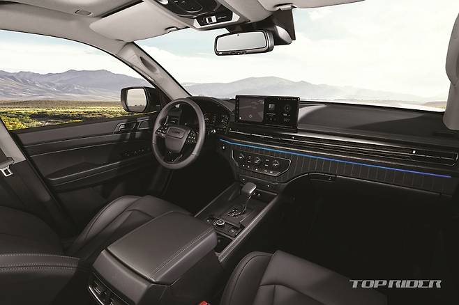 전면부는 굵직한 DRL(주간 주행등) 라인과 5개의 키네틱 라이팅 블록으로 이루어진 수평형 LED 센터 포지셔닝 램프를 적용해 또렷하고 강렬한 인상을 완성한다. 이는 높은 시인성을 제공함과 동시에 브랜드 정체성을 선명하게 드러낸다. 스퀘어 타입 범퍼와 라디에이터 그릴은 정통 오프로드 픽업 이미지를 부각하며 입체적인 헤드램프와 조화를 이루고 있다.