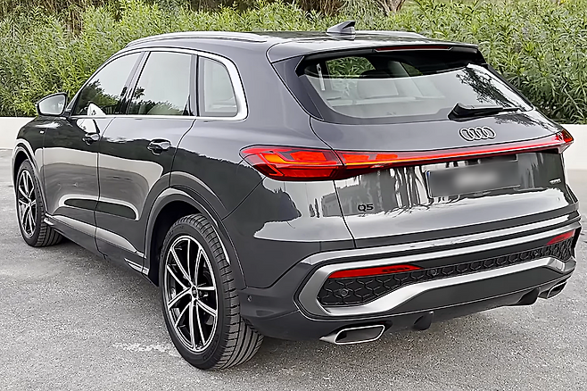 신형 Q5는 외관부터 새로운 인상을 준다. 전장은 기존 모델보다 35mm 길어진 4,770mm이며, 날렵해진 보닛 라인은 전면 비율을 더욱 역동적으로 만든다. 넓어진 싱글 프레임 그릴과 새롭게 디자인된 LED 헤드램프는 더 넓고 탄탄한 전면 이미지를 완성한다. 측면은 낮아진 캐릭터 라인과 정제된 휠 아치로 프리미엄 SUV 특유의 안정적이고 낮은 실루엣을 강조한다. 후면은 수평형 테일램프와 크롬 디퓨저로 고급스러움과 스포티함을 동시에 표현했다.